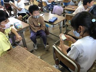 他の学年でも見かける光景。楽しみながら漢字を覚えています。