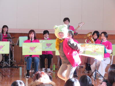 体育館に響き渡る生演奏は、やはり迫力が違います。 子どもたちがよく知っている人気曲ばかりのプログラムに、会場は大盛り上がり。曲に合わせたダンスコーナーでは、子どもたちが進んで前に出て、ノリノリで体を動かす姿が見られました。
