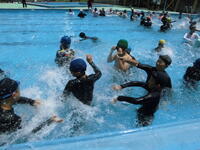 当日は、150名を超える児童が参加し、プールや水鉄砲を使った水遊びで思いっきりはしゃぎました。