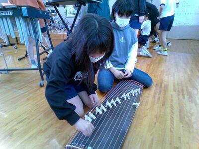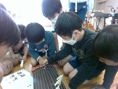 「日本の楽器に親しみましょう」という学習で、琴を体験してみました。