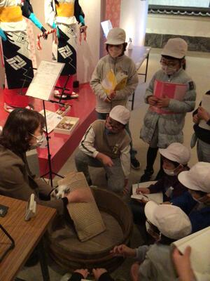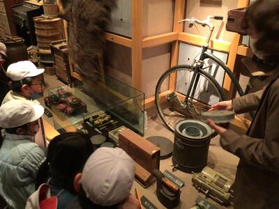 社会科「昔のくらし」に授業で、2月15日に1・3組、16日に2組が時津カナリーホールにある民俗資料館に行きました。 資料館の方のわかりやすい昔の道具の使い方の説明を聞き、ビデオを見る中で、時津の昔と今の暮らしの違いを考えながら学ぶことができました。