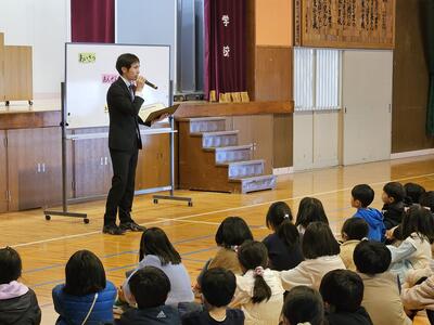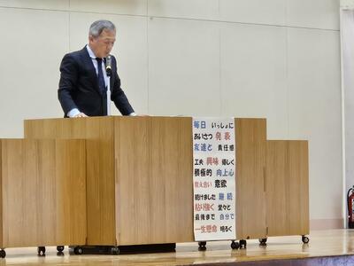 校長先生は、子どもたちの通知表に書かれた所見欄の言葉をたくさん紹介し、一人ひとりの成長を称賛してくださいました。そして、「今日は、できるようになったことを見つめ直し、自分を褒めてあげましょう。」と、温かい言葉を贈られました。