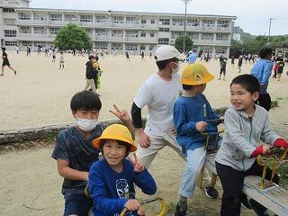 今日は1日天気ももつ予報だったのですが、歓迎集会後に天気予報を確認すると雨が降る予報にかわっていました。そのため、急遽、校内遠足に変更しています。雨が降るまで運動場で遊び、その後は体育館や校舎内で過ごします。少し残念ですが、自分たちで「楽しい」を見つけ過ごさせたいと思います。下校は予定通りとします。