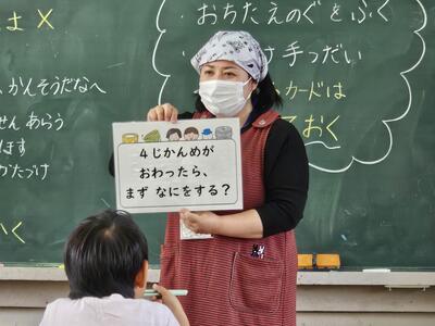 「葉っぱの数が増えている!」と、前回の観察時と比べて葉の数の変化に気づく子。
