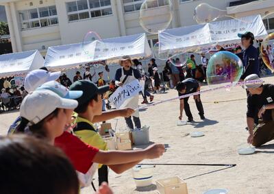 多くの方が子どもたちのために準備をしてくださり、活気あふれるお祭りとなりました。また、合間には「シャボラボ」さんによるシャボン玉ショーも開かれ、盛りだくさんの内容で会場は大いに盛り上がりました。