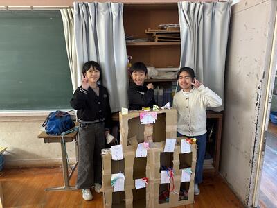 当日は手作りのメダルやメッセージカードで歓迎し、学校の中を案内したり、教室や体育館で5年生が考えた遊びをしたりして楽しい時間を過ごしました。最初は緊張していた園児さんも5年生が目線を合わせて話したり、優しく手を引いて歩いたりするうちに次第に笑顔になってくれました。別れ際に、いつまでも手を振ってくれる園児さんの姿を見て満足した様子の5年生でした。
