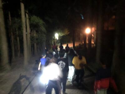 ナイトウォーク、星を見ながら虫の声を聞きながら歩きます。夜風が気持ちいいです。