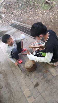 まず、炊事場の使い方や薪割りの仕方などの説明を受けました。