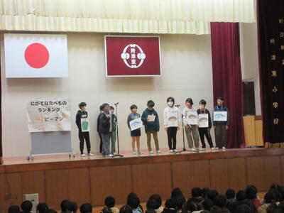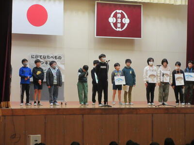 給食委員会が中心となり、給食に関する◯✕クイズや食べ物の劇を行いました。全校児童のみんなは、集会の中で、調理員さんへの感謝の気持ちや給食を好き嫌いせず残さず食べる大切さに気づくことができました。